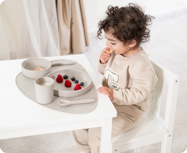 Inclui prato (400ml), tigela (200ml), copo (150ml), garfo e colher. Tudo pensado para as primeiras refeições do bebê, promovendo independência e praticidade desde cedo. Ideal para introdução alimentar e autossuficiência dos pequenos.