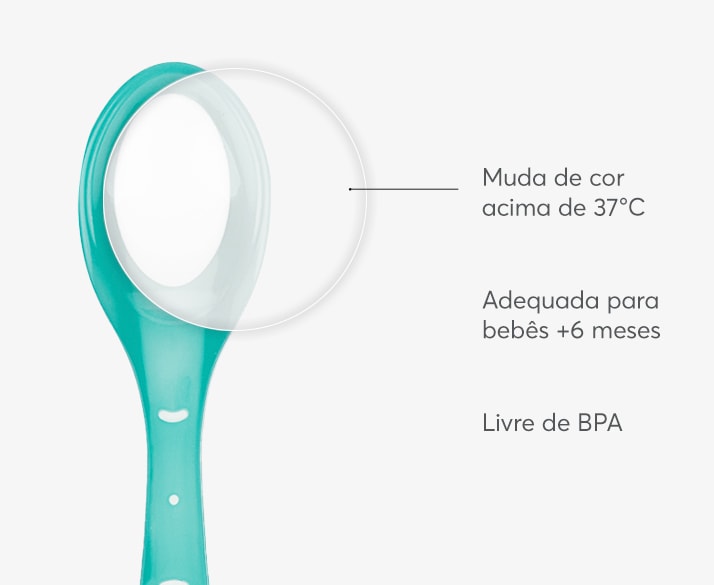 Colheres com sensor inovador que mudam de cor quando a comida ultrapassa 37°C, alertando visualmente sobre alimentos muito quentes. Adequadas para crianças a partir de 6 meses e totalmente livres de BPA, garantindo a proteção que seu bebê merece em cada refeição.