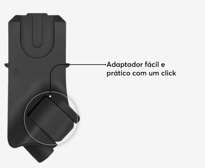 Disponível na cor preta, o adaptador combina elegância e modernidade, harmonizando com diferentes estilos de carrinho e bebê conforto, valorizando o visual com discrição e sofisticação.