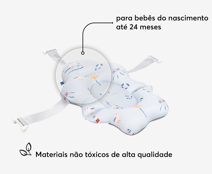 O Suporte para Banho Macio Nubo oferece proteção e conforto para bebês de 0 a 24 meses. Produzido com materiais de alta qualidade e não tóxicos, garante tranquilidade para os pais em cada banho.