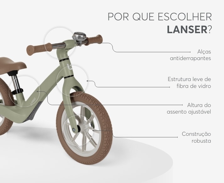 Ideal para crianças de 2 a 6 anos, a LANSER é projetada para promover habilidades motoras e espacialidade através do ciclismo.