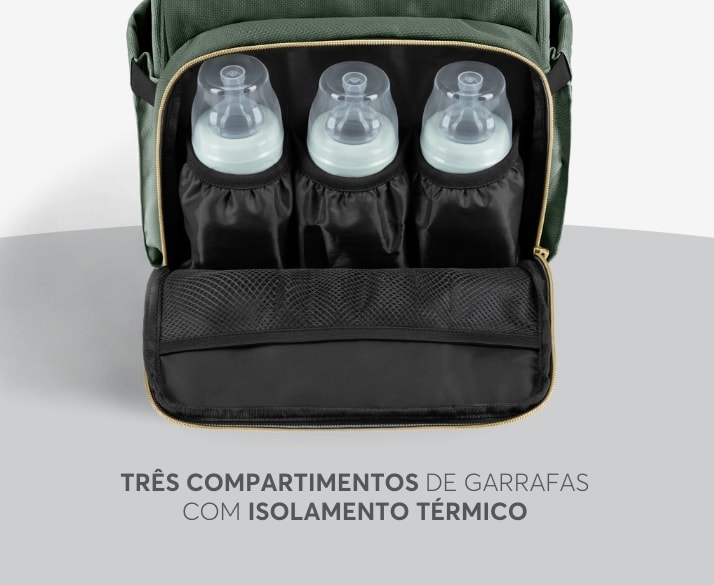 3 compartimentos para garrafas que mantêm a temperatura da água ou do leite por horas