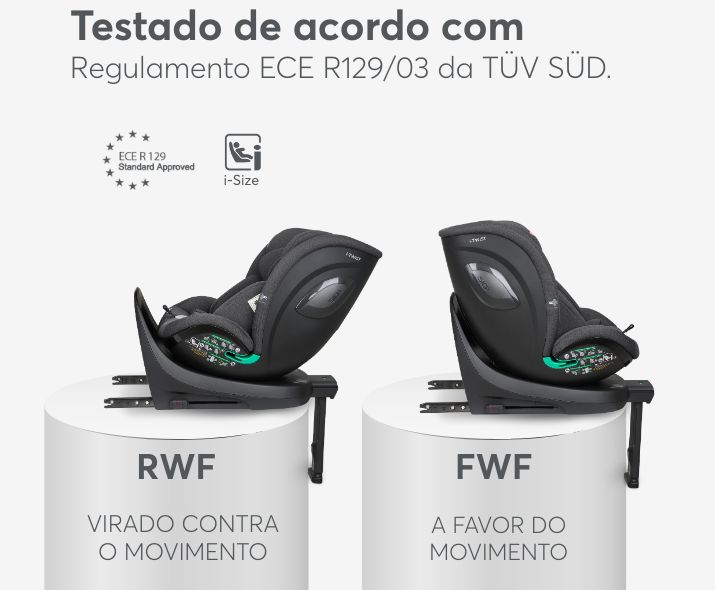 A i-TWIST foi rigorosamente testada e certificada pela TÜV NORD de acordo com o Regulamento ONU nº R129/03. Esta cadeira auto não só garante a segurança do seu filho, como também acompanha o seu crescimento, tornando-se a escolha perfeita para famílias que procuram uma solução de viagem fiável e adaptável.