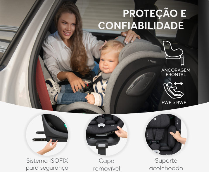 Projetada para acomodar crianças de 40 cm a 150 cm, a i-TWIST garante uma viagem segura e confortável em todas as fases de crescimento. Desfrute de uma solução de viagem que se adapta às necessidades do seu filho em crescimento.