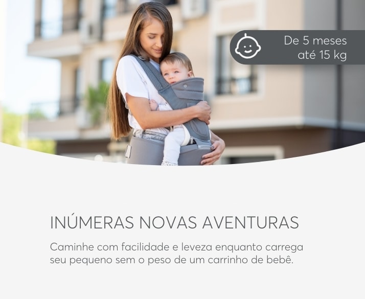 Projetado para conforto: Possui um cinto largo e assento para quadril que distribuem uniformemente o peso do bebê, juntamente com alças de ombro acolchoadas ajustáveis para suporte extra. Adequado para crianças com mais de 5 meses (até 15 kg). Tecido respirável e leve feito de 100% poliéster.