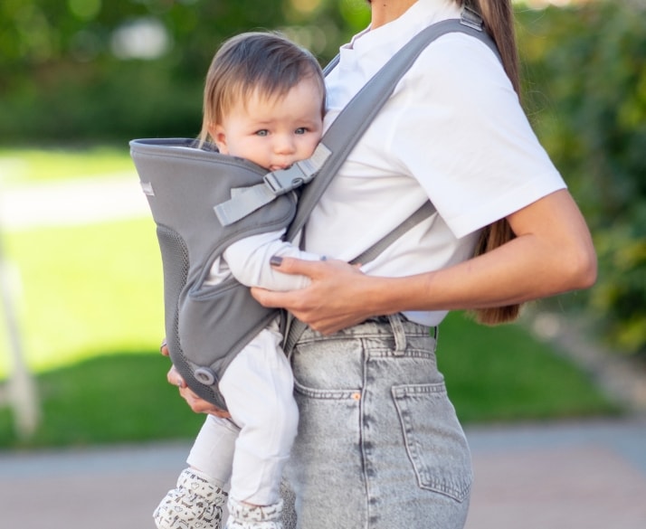 Oferece até oito posições e combinações de transporte em três modos: virado para dentro a partir de 5 meses, ideal para nutrir a proximidade; virado para frente a partir de 5 meses para interagir com o mundo; carregado nas costas a partir de 6 meses para explorar aventuras à medida que crescem.