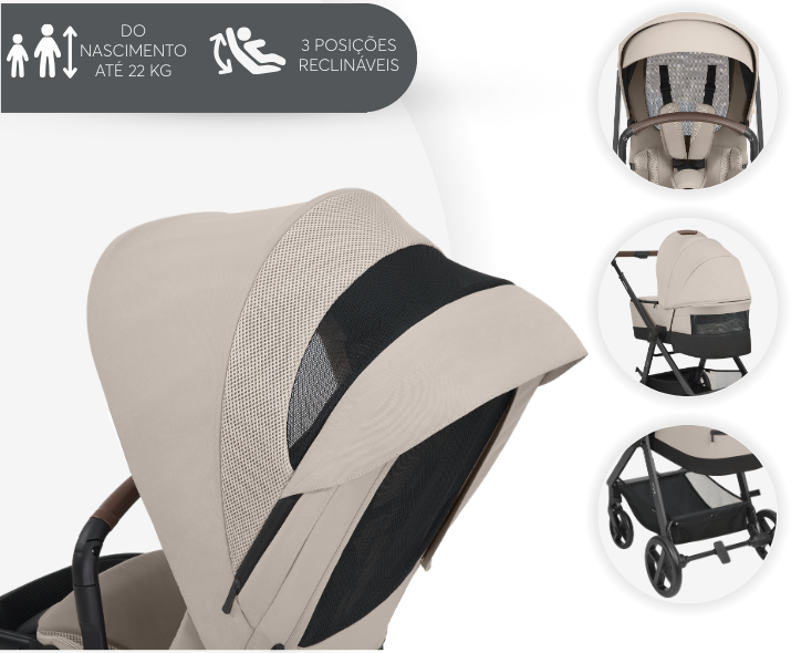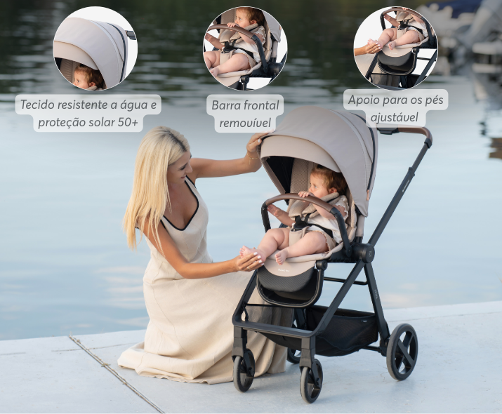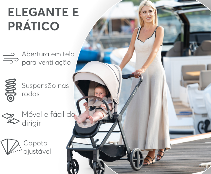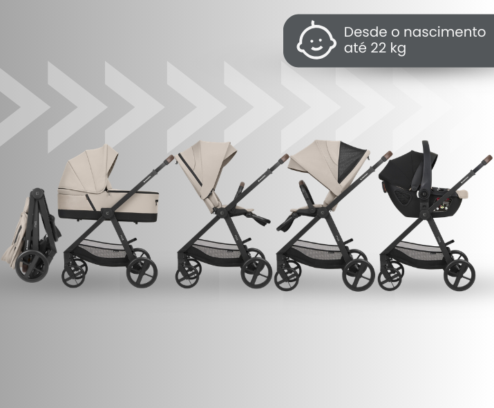 Um carrinho de viagem 3 em 1 elegante e funcional, projetado para se adaptar facilmente às necessidades do seu bebê desde o nascimento até 22 kg. Com uma estrutura leve de alumínio pesando apenas 10,35kg, design moderno e recursos versáteis, o carrinho Mia torna os passeios diários tranquilos e agradáveis ??tanto para o bebê quanto para os pais.