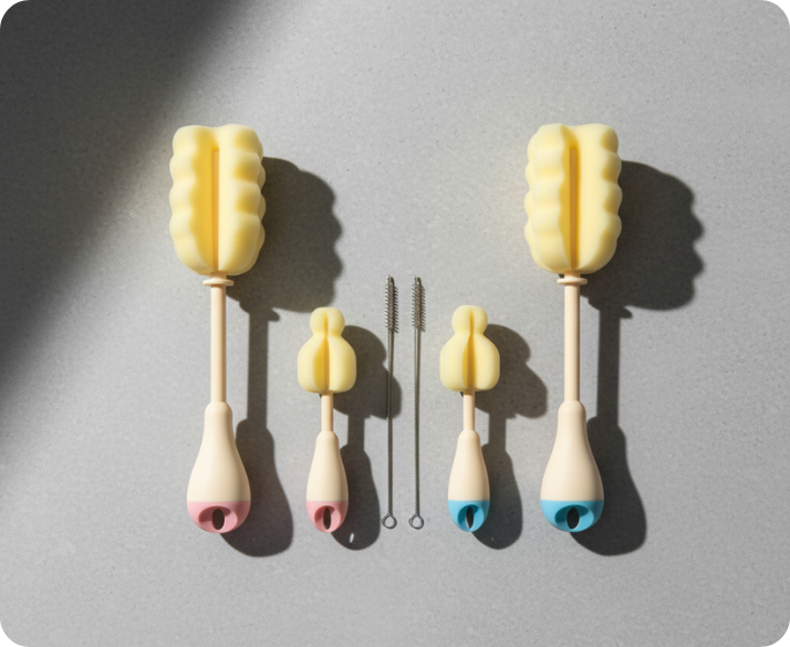 Com três escovas especializadas em um só kit, você simplifica a limpeza de mamadeiras, bicos e canudos, mantendo sempre o mais alto padrão de higiene. Praticidade que facilita o dia a dia e garante acessórios sempre prontos para uso.
